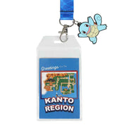 • Custom Design: This lanyard boasts a vibrant custom design featuring Blue Kanto Region and other iconic game graphics. A rubber Squirtle charm, plus the clear ID sleeve with collectible blue "Welcome To Kanto Region" card complete this cool product.